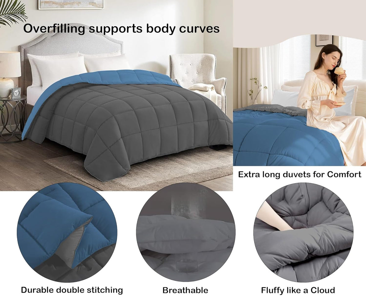 AYKA Reversible 220 GSM Microfiber Comforter for AC & Winter Use, Soft and Lightweight Blanket / Quilt / Dohar / Duvet | Ideal for King Size Double Bed (90 × 100 inches) | Grey & Med Blue