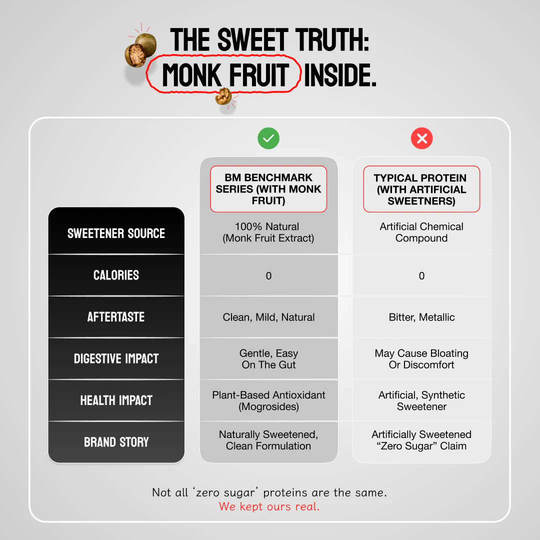 Get 25g high-quality protein per scoop with BigMuscles Benchmark Clean Protein Whey—made using only 8 natural ingredients. Designed for muscle growth, faster recovery, and everyday performance without any unnecessary additives.