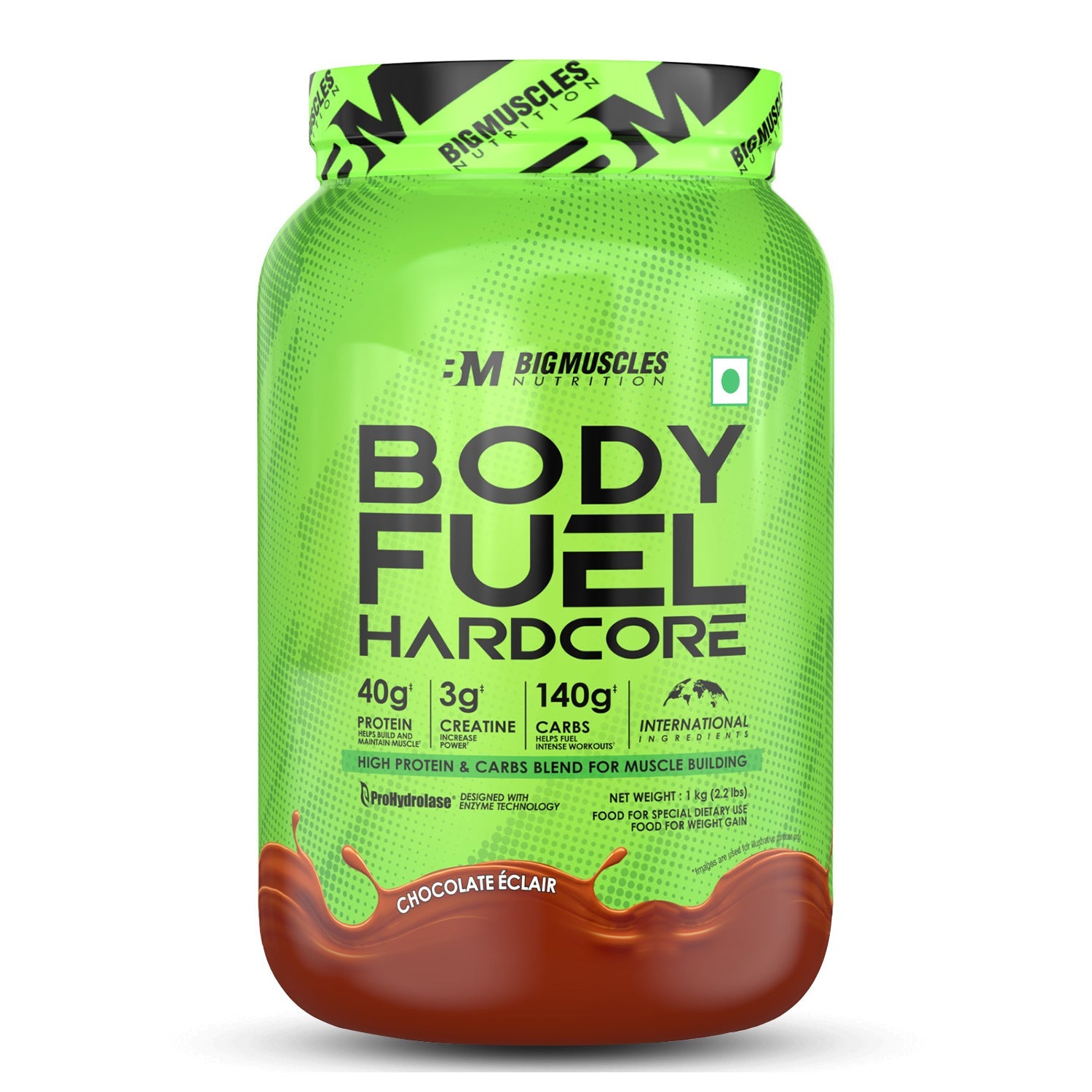 BigMuscles Nutrition Body Fuel Hardcore is an advanced formula that embodies cutting-edge muscle optimization technology, exclusively from BigMuscles Nutrition. This powerful blend combines creatine, carbohydrates, protein, along with a balanced mix of vitamins and minerals designed to enhance strength and muscle size.